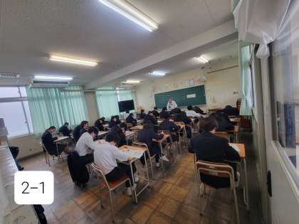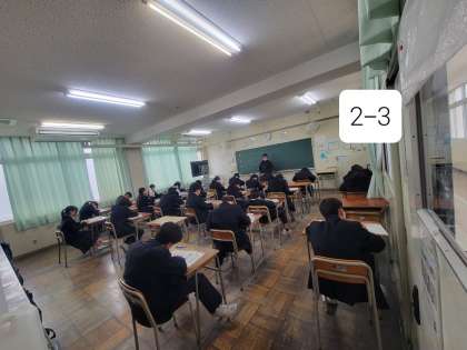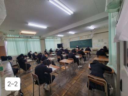 本日の学年末テスト最終日のようすです。いよいよ3日目のテストです。皆さん、あと少し頑張ってください。