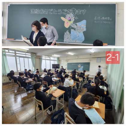 始業式のあと各教室にもどり、最初の学級活動のようすです。新しいクラスで少し慣れないようすでしたが、明日から授業、給食が始まります。
