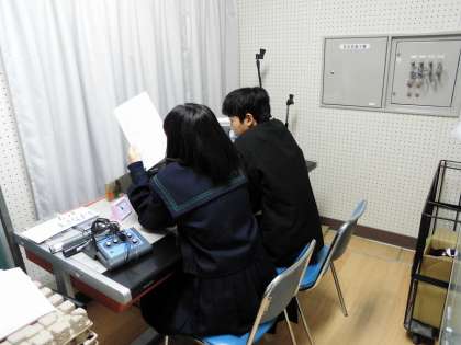 保健委員会放送のようすです。今回のテーマは「低体温の予防について」でした。低体温になると免疫力が下がり、さまざまな病気にかかる可能性があります。そこで、低体温を防ぎ、より健康に過ごすためにどうすればよいか、具体的に説明しました。