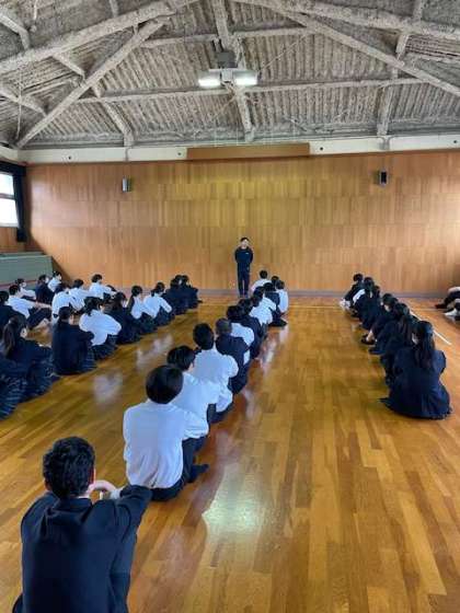 本日は朝から3年生が学年集会を行いました。担当の先生から配布物はかならず保護者の方に渡してくださいと改めて注意いたしました。その中には、保護者の方とよく相談して提出する進路に関わるプリントや高校のオープンスクール、入学説明会の申し込みなど、締め切りのある中学校からの大切な案内もたくさんあります。締め切り直前ではなく、余裕をもって早い目に提出しましょうと連絡をしました。