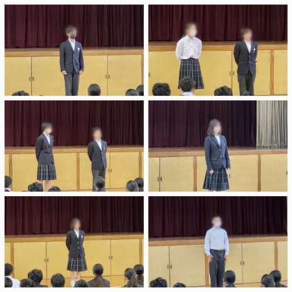 本日は朝から2年生が学年集会を行いました。各委員会の代表の人から今月の目標を発表してくれました。皆さん、少し緊張ぎみでしたが、原稿を見ずに伝えてくれました。