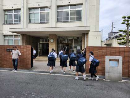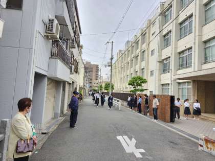 本日の朝登校のようすです。朝はくもり空で過ごしやすい気温です。明日から中間テストです。今日も1日がんばりましょう。