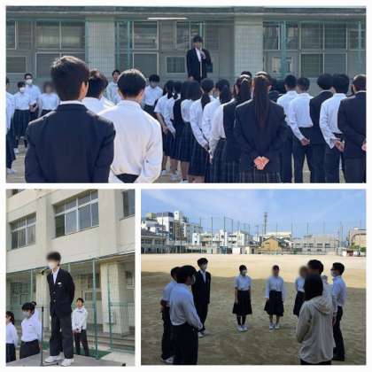本日は朝から全校集会を行いました。校長先生からテスト直しの大切さと1年生一泊移住、2年生校外学習、3年生修学旅行、全体での体育大会をみんなの団結力と思いやりの心で成功させてほしいとお話をしました。