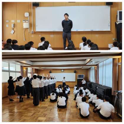 本日は朝から1年生が学年集会を行いました。担当の先生からご自身の経験談などを交えてお話してくださいました。