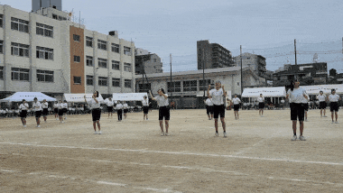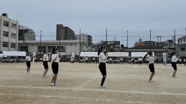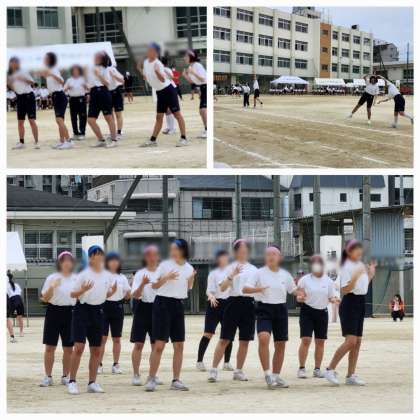 いよいよメイン種目の3年生女子による創作ダンスです。ダンス以外のパフォーマンスを盛り込まれていて、楽しく演技をしてくれていました。