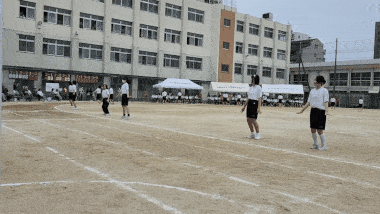 いよいよメイン種目の3年生女子による創作ダンスです。ダンス以外のパフォーマンスを盛り込まれていて、楽しく演技をしてくれていました。