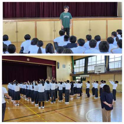 本日は朝から1年生が学年集会を行いました。担当の先生から、昨日の体育大会の振り返りのお話がありました。