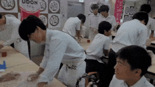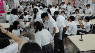 リズムにのりながら体験を行っています。