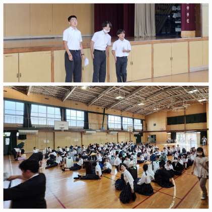 明日は、9時登校です。9時から9時10分の間に登校してください。