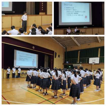 昨年度に引き続き北野病院から講師として助産師さんをお招きして、命の教育を行いました。互いを大切にすること、デートDV、性について、これから大人へなるための大切なことをたくさん学んでいます。