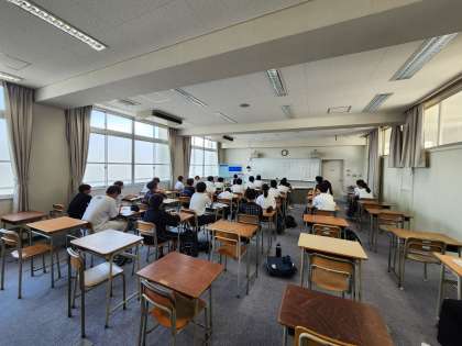 本日は朝から2年生が夏休みの学習会を行っています。国語の動詞の活用を学習していました。部活動の前に参加している人もいました。頑張ってください。