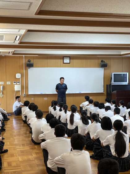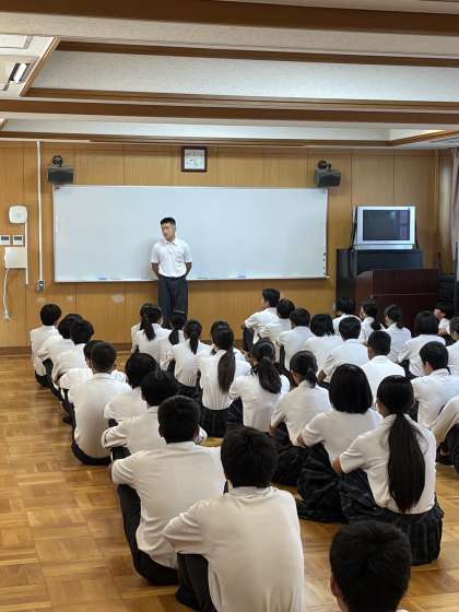 二学期最初の学年集会をしました。担当の先生からは充実した夏休みでしたかとの問いかけがありました。