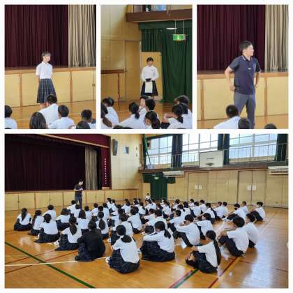 本日は朝から1年生が学年集会を行いました。担当の先生から2学期が始まって2週間が経ちましたが、生活習慣がまだ戻ってない人は、できるだけ早く治し、規則正しい生活を送りましょうとのお話がありました。