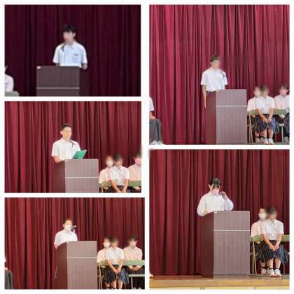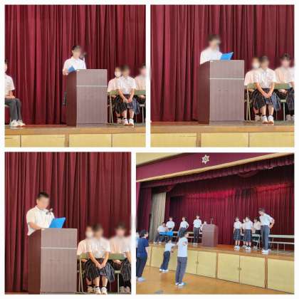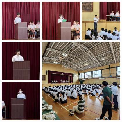 本日は生徒会役員選挙のため立候補者の立合演説会を行いました。立候補者と応援演説の人が全校生徒の前で演説を行ってくれました。中には原稿を見ずに演説している人もいました。