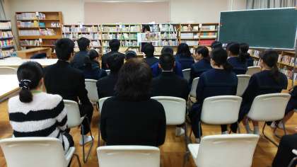 本日は、学校元気アップで読み聞かせボランティアの方に来ていただき、C.V.オールズバーグ著、村上春樹訳の『急行「北極号」』の読み聞かせをしていただきました。専門家の読み聞かせとあって、参加した生徒からは、「楽しかった」「声がきれいだった」「興味が湧いた」などの感想が聞こえてきました。