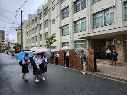 本日の朝登校のようすです。8時過ぎからまた雨が振り出してきました。本日は中間テスト2日目です。頑張ってください。