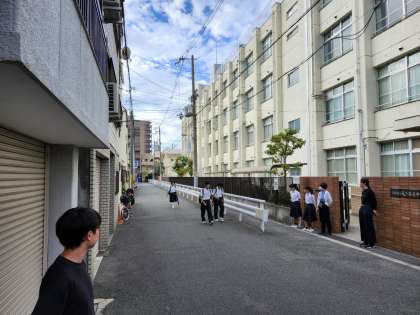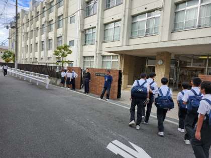 朝登校のようすです。今日は夕方から雨が降る予報となっており、傘を持って登校する人が多くいました。今週も頑張りましょう。