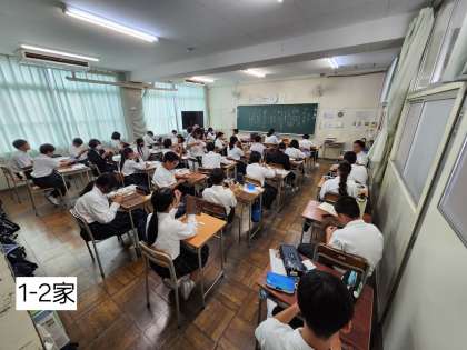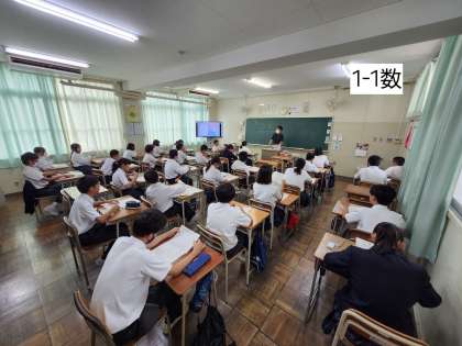 1組では数学のテスト返却と解説、2組では家庭科で裁縫の授業を行っていました。