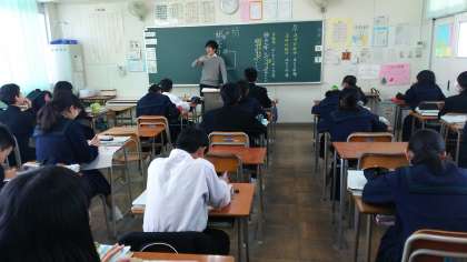 1年生国語の授業のようすです。現在、国文法の学習をしています。具体例をたくさんあげながら、分かりやすい授業になるように工夫を凝らしています。「連帯修飾語」「連用修飾語」「独立語」……そういえば、その昔、大格闘した覚えがあります。