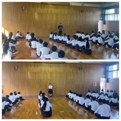今日の学年集会では、まず係生徒からはあいさつの大切さを話してくれました。