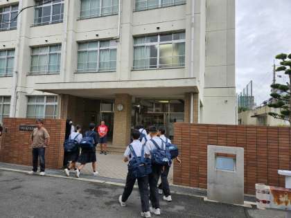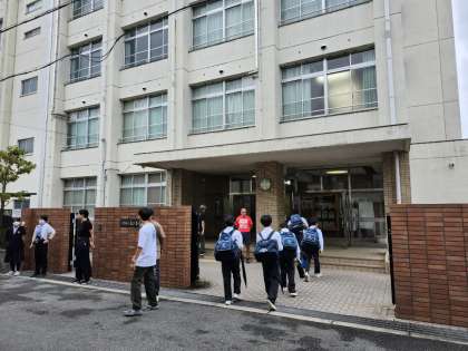 本日の朝登校のようすです。今日はくもり空、過ごしやすい気温となっています。地域の方もおはよう運動に参加してくれています。ありがとうございます。