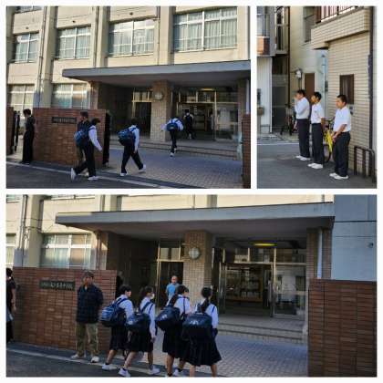 本日の朝登校のようすです。気持ちいい朝となっています。今日も頑張りましょう。