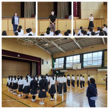 本日は朝から1年生が学年集会を行いました。担当の先生から、文化発表会に向けて取り組んでいる作品はアートです。皆さん、真剣にかつ丁寧に作り上げてくださいとのお話がありました。