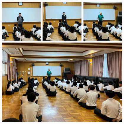 11月から道路交通法の罰則規定がかわります。中学生でも、自転車に乗るときに、ながらスマホや傘をさして乗ったりしがちです。罰則規定が強化されたからではなく、危険な運転ですので、絶対にやめましょう、と注意喚起をしました。