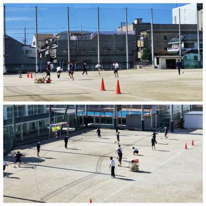 2年生の体育の授業では、男子サッカー、女子バスケットボールを行っています。