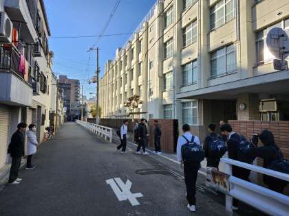 本日の朝登校のようすです。天気は快晴ですが寒い朝となっています。今日から3日間全学年期末テストです。いつもより早く登校してくる人も多いように感じます。皆さん、頑張ってください。