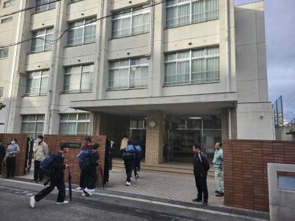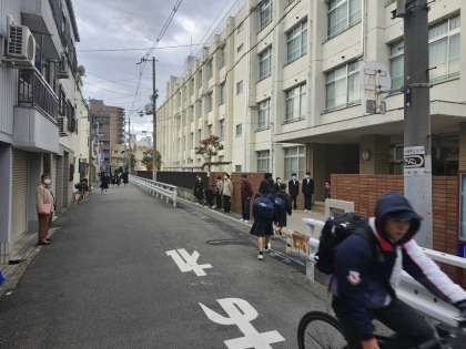 本日の朝登校のようすです。朝からくもり空ですが気温はいくぶん高めです。午後からは雨の予報です。
