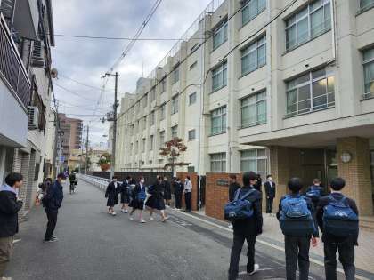 本日の朝登校のようすです。昨日の雨はやみましたが天気は少し風が冷たいくもり空です。今日も1日頑張りましょう。