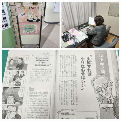 本日はお昼の時間にランチタイム放送を行いました。「今日は何の日」のテーマは、松下幸之助さんについてでした。今日11月27日は、松下電器産業の創始者である松下幸之助さんが生まれた日とのことです。和歌山県で生まれ大阪に出てきて自転車屋などででっち奉公をしていたそうですが、1918年に松下電器製作所を立ち上げ、電気ソケットや自転車用の電池ランプの製造、販売で成功をおさめました。