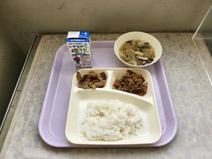 本日の給食は、鶏肉の梅風味焼き、うすくず汁、きんぴらごぼうでした。寒いときには少しとろみのついたうすくず汁は、からだが暖まりました。きんぴらごぼうはごはんに混ぜて食べると美味しかったです。