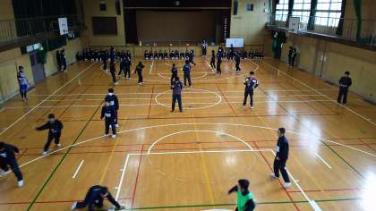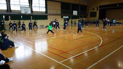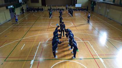 1年生の球技大会のようすです。男子はサッカー、女子はバスケットボールを行う予定でしたが、運動場がコンディションが悪かったため、男女とも体育館でドッジボールを行いました。全員が力を合わせて頑張っていました。