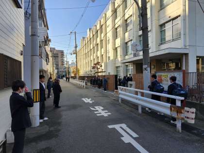 本日の朝登校のようすです。今日も寒さのいくぶんましな快晴の朝となっています。教職員、生活委員や生徒会の人、地域の方とたくさんの人が朝のおはよう運動に参加してくれていました。いつもありがとうございます。今日も1日頑張りましょう。