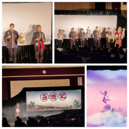 本日は、劇団影法師さまにお越しいただき、中国の伝統芸能である影絵を見せていただきました。演目は「鶴と亀」「西遊記」で、皆さん影絵の動きと内容に見入っていました。