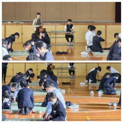 12月12日(木)に2年生が百人一首大会を行いました。昨年度から上の句で札を取る人が多く、レベルの高い大会となっていました。