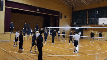 3年生が球技大会としてバレーボールを行っています。受験勉強のストレス発散で男女とも盛り上がっていました。