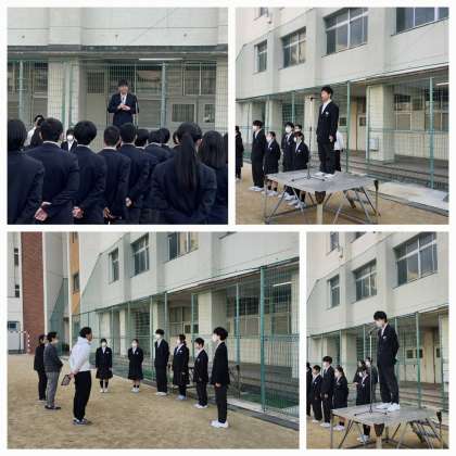 本日は朝から全校集会を行いました。校長先生から3年生は今週ある学年末テストを頑張ってほしいということや校長面接練習についての感想をお話しました。また、8時20分ギリギリに登校する人が多いので受験当日に向けて、余裕をもって行動してほしいというお話もしました。