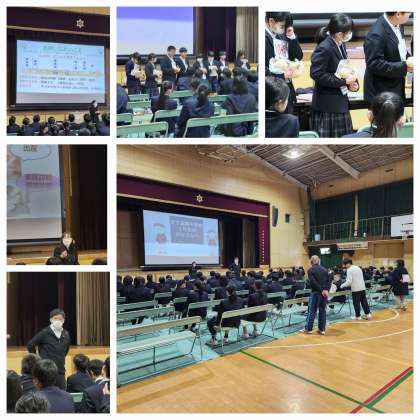 本日、1年生では助産師さんをお招きして、命の教育を行いました。命の大切さ、生命の誕生の尊さ、お母さんのおなかの中で成長する胎児の大きさ、妊婦体験などさまざまなことを学びました。