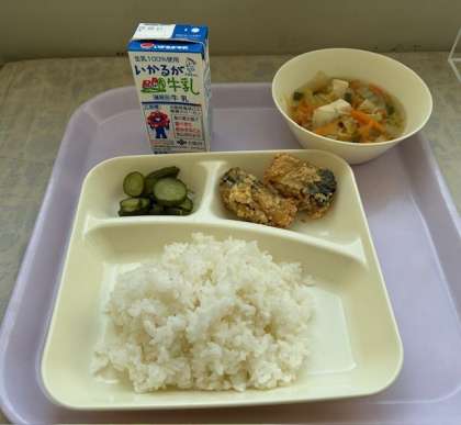 ・サバのカレー竜田揚げ・五目汁・きゅうりの甘酢和え でした。