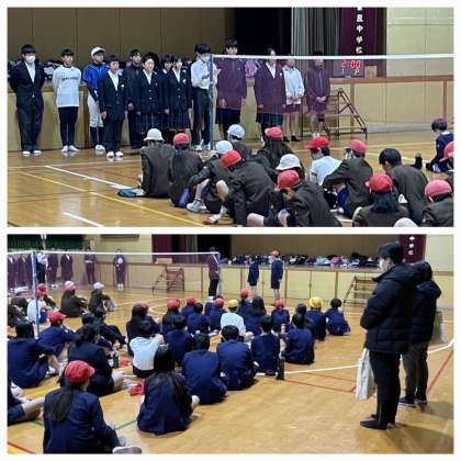 校区の2つの小学校から6年生対象に見学交流会として授業と部活動体験を行いました。中学校の生徒会や部活動の1,2年生が丁寧に教えてくれていました。