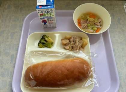 ・鶏肉とじゃがいものガーリック焼き・スープ煮・ブロッコリーのサラダ でした。