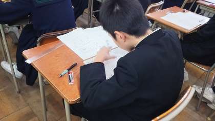 新聞やテレビ、ラジオでも報道されているように、本日「大阪府チャレンジテスト」を実施しました。1年生は国語・数学・英語の3教科、2年生は国語・社会・数学・理科・英語の5教科でした。どの生徒も、真剣に問題に取り組んでいました。