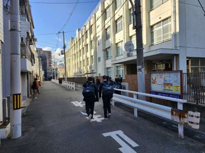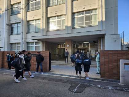 本日の朝登校のようすです。寒波の影響で、天気は晴れですが冷たい風が吹き、非常に寒さの厳しい日となっています。1年生は校外学習です。今日も頑張りましょう。