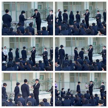 本日は朝から全校集会を行いました。大阪市、西成区の絵画写真コンクールにたくさんの応募をしてくれました。その中から受賞に輝いた人への表彰伝達を行いました。また、今月の清掃強化習慣でのクラス表彰を行いました。