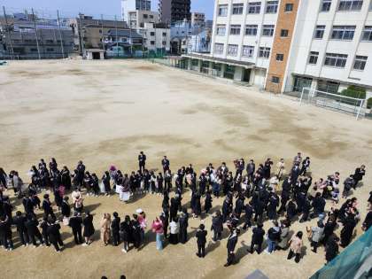 式も終了し、卒業生がを花道を通っています。この後しばらくの間お別れの時間です。