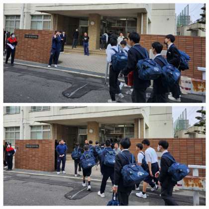 本日の朝登校のようすです。昨日の激しい風をともなう雨もやみ、穏やかな朝となっています。今週は最後の金曜日です。頑張りましょう。2,3年生は4限までとなっており、本日給食後下校となります。1年生はオリエンテーションがあるため5限後下校となります。
