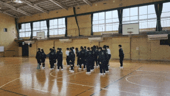 話し合ったことを発表したり、集団行動で整列の練習をしています。